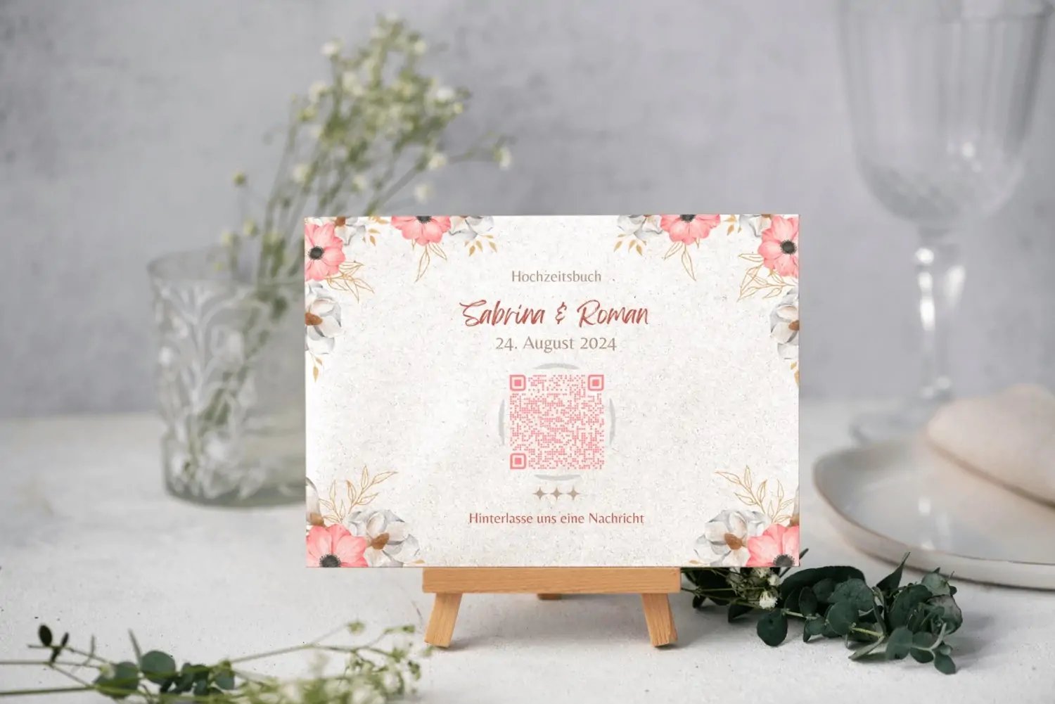 - Códigos QR personalizáveis que se adaptam ao estilo do seu casamento.
